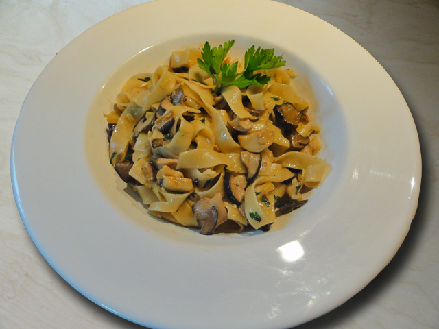 Pilzen, gut bissfesten (nicht abgeschreckten) Rigatoni +